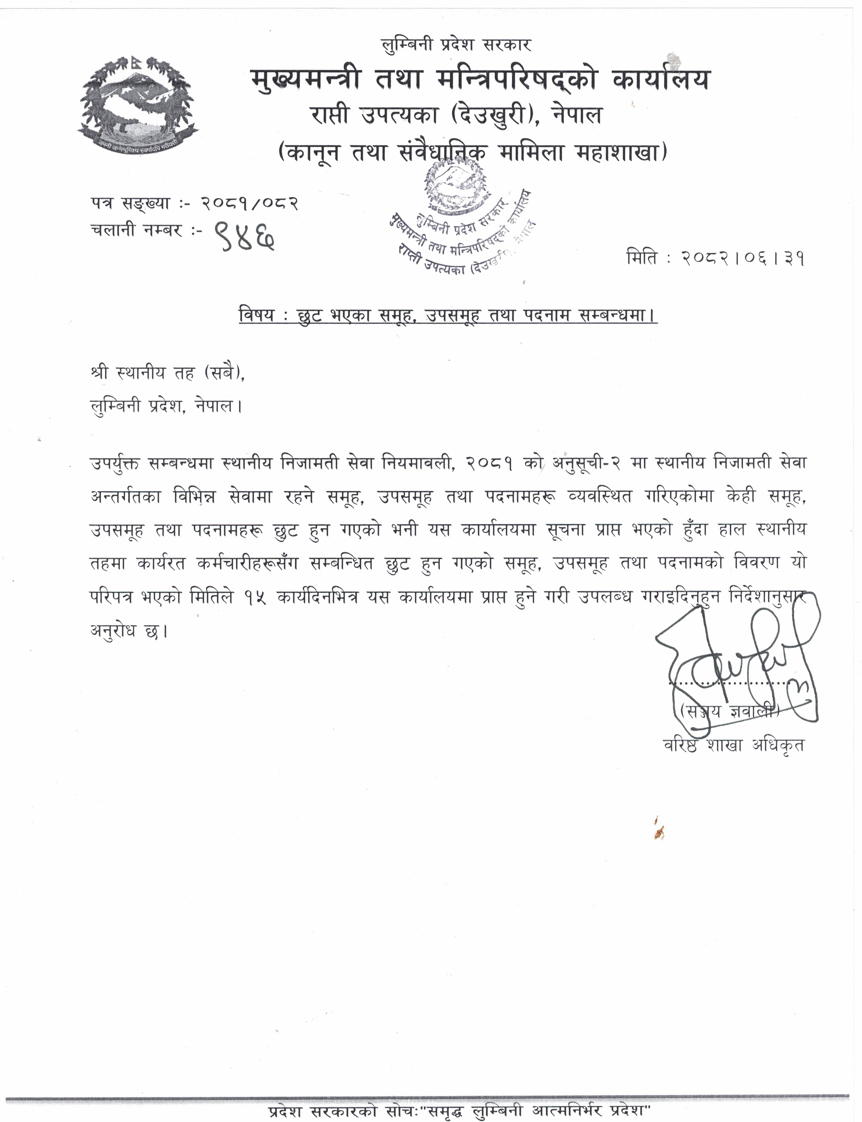 छुट भएका समूह, उपसमूह तथा पदनाम सम्बन्धमा । (स्थानीय तह सबै), लुम्बिनी प्रदेश