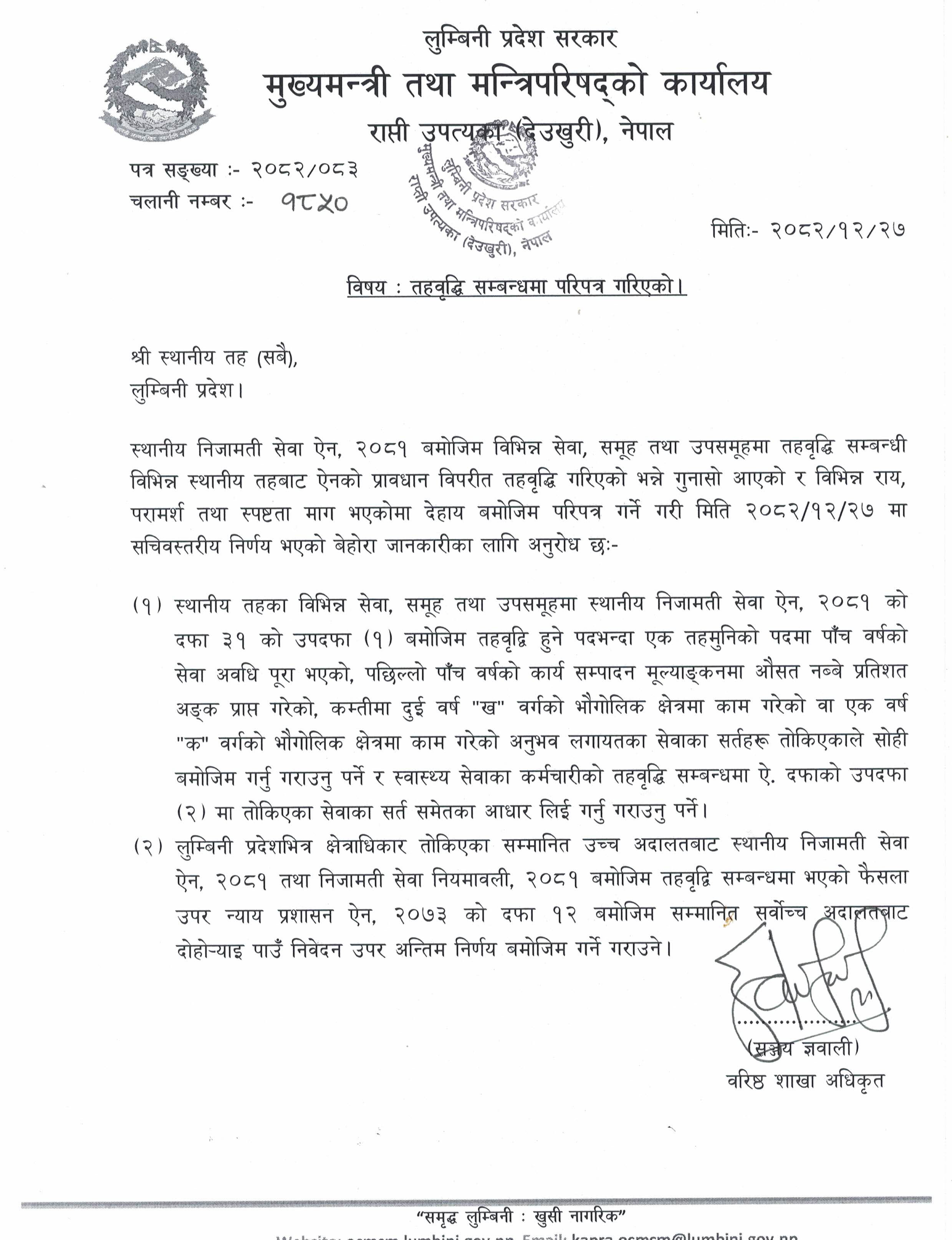 तहवृद्धि सम्बन्धमा परिपत्र गरिएको।